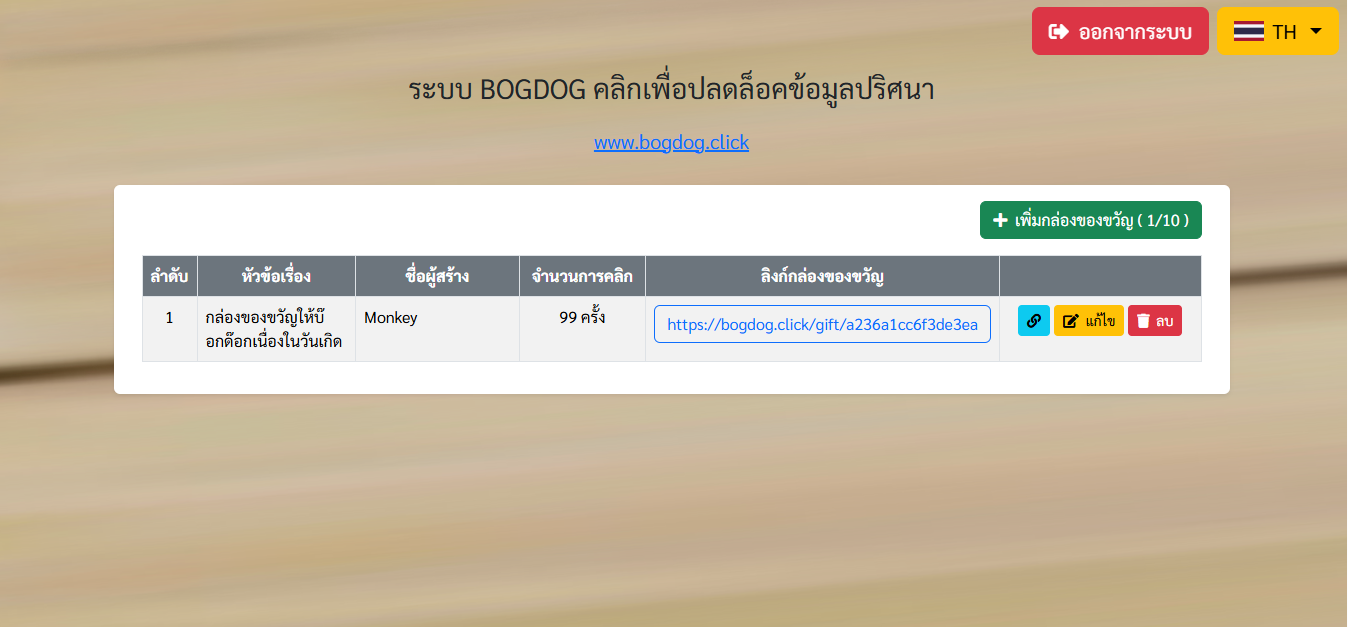 ระบบ BOGDOG คลิกทุก 0 ครั้ง เพื่อปลดล็อคข้อมูลปริศนา